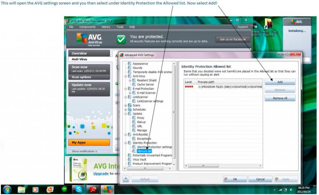 Due to certain settings within AVG, you will need to add e@syFile™ Employer to the exceptions list in your advance settings in order to work without any further interference from the AVG.