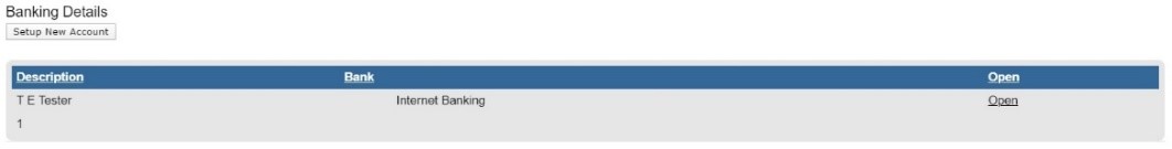 If you click the “Open” hyperlink, the banking Information page will be displayed.