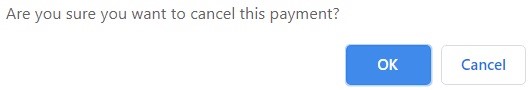 - To cancel the payment, click the ‘Cancel Payment’ button. A confirmation message will be displayed. Click ‘OK’ to confirm the cancellation of the payment.