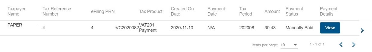 - Select the ‘View’ button and the ‘Payment Details’ screen will be displayed.