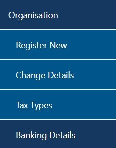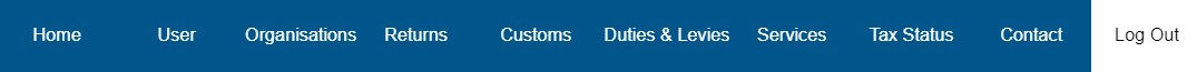 The menu bars will differ between the Individual, Organisation and Tax Practitioner Profiles. Below is an example of the Individual and Organisation profile menu bar.