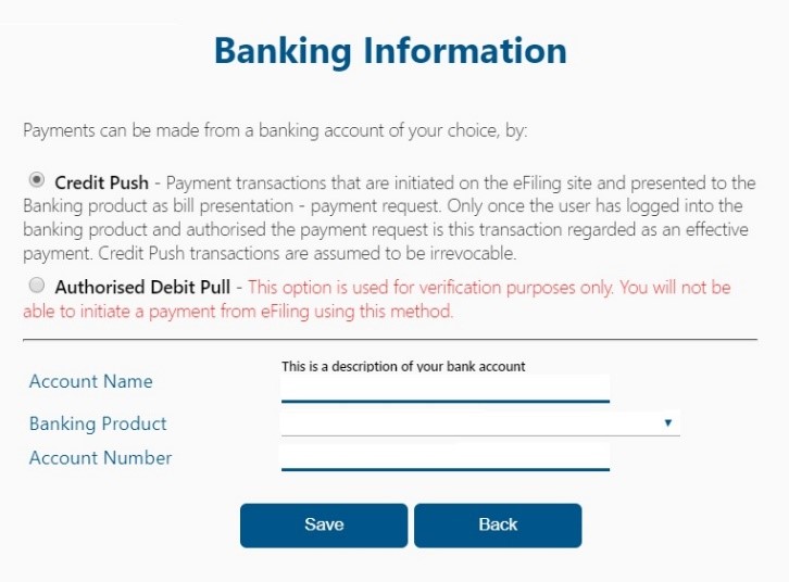 Once you have set up your banking details on eFiling you can now start initiating payments.