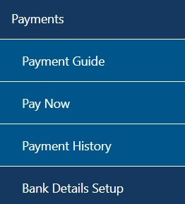 Click “Returns”, then “Payments” on the navigation bar on the left and “Bank Details Setup” to setup your bank details on eFiling.