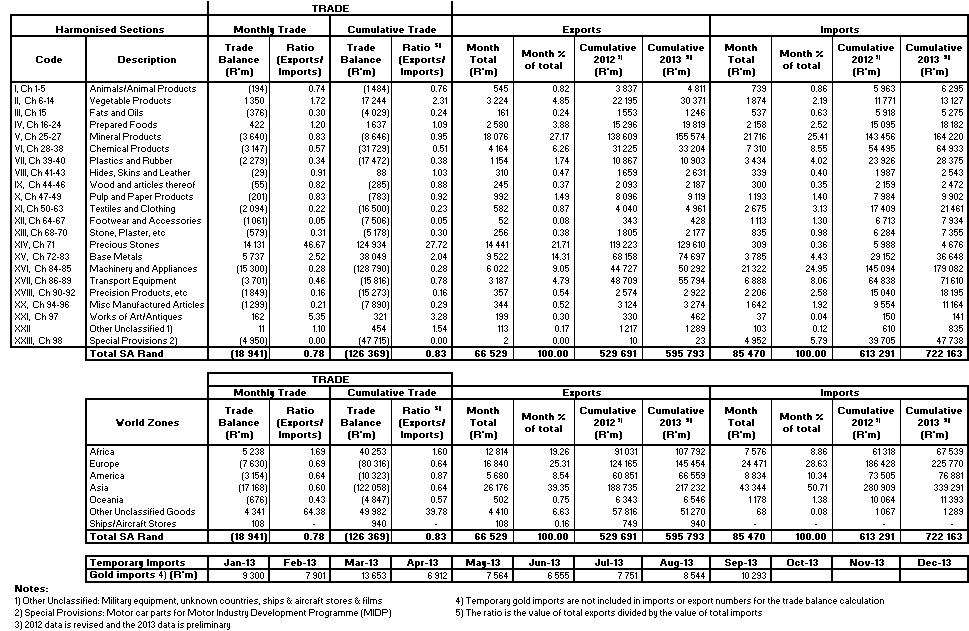 Pretoria, 31 October 2013 – The South African Revenue Service (SARS) today releases trade statistics for September 2013 that record a trade deficit of R18.94 billion.