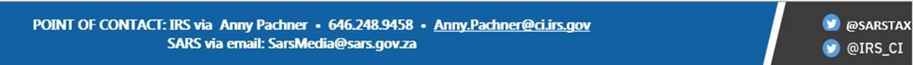 “SARS welcomes the collaboration with the IRS, particularly with our renewed focus on non-compliant high wealth individuals and offshore holdings. One of our strategic objectives is to make it easy for taxpayers to comply with their tax obligations and hard and costly for those who willfully do not comply,” said SARS Commissioner, Edward Kieswetter. “We trust that this partnership will yield results, also in terms of augmenting our internal skill sets as we clamp down on illegal activities affecting both our countries.”