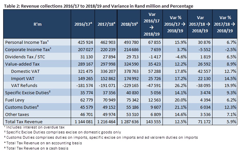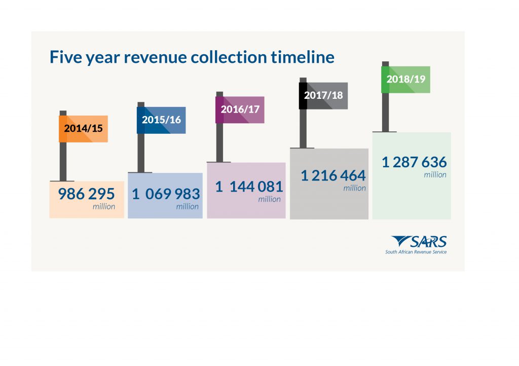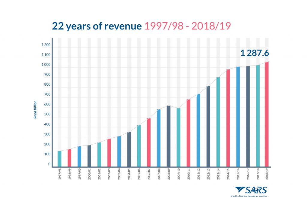 Pretoria, Monday 1 April 2019 – For the financial year ending 31 March 2019, SARS collected an amount of R1 287.6 billion, against the 2019 Budget estimate of R1 302.2 billion resulting in a deficit of R14.6 billion (-1.1%).