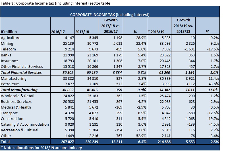 - Company Income Tax (CIT) collections contracted by 2.5%, the contraction is on the back of a significant number of CIT refunds which were paid to the large business segment and relate to multiple periods that were under audit review, as well as the continued efforts to clear the IT credit book. Furthermore, the continuing power cuts imposed by the utility company also contributed to the decline as business activities and company operations were severely affected thus affecting their profitability.