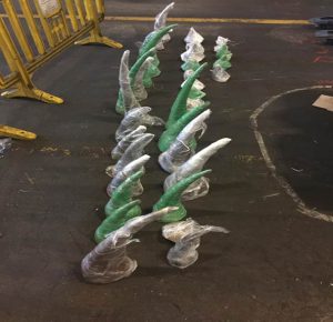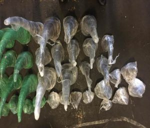 The 36 pieces of rhino horn were found after “Lizzy” a detector dog reacted positively to a consignment of so-called ‘decoration Items’ in a warehouse. Customs officials accordingly cut open eight boxes attached together with bubble wrap. The horns, destined for Dubai, were hid underneath cut laminated wooden sheets in four of the boxes which were otherwise filled with doormats and decorative items.