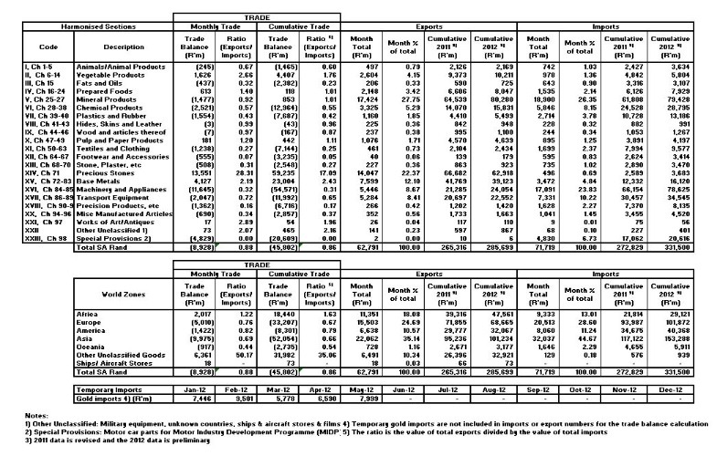29 June 2012 – South African Trade Statistics for May 2012