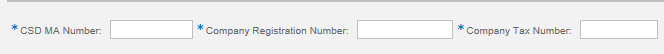 - the registration screen has three fields, the Supplier MA number, Company Registration Number and Company Tax Number: